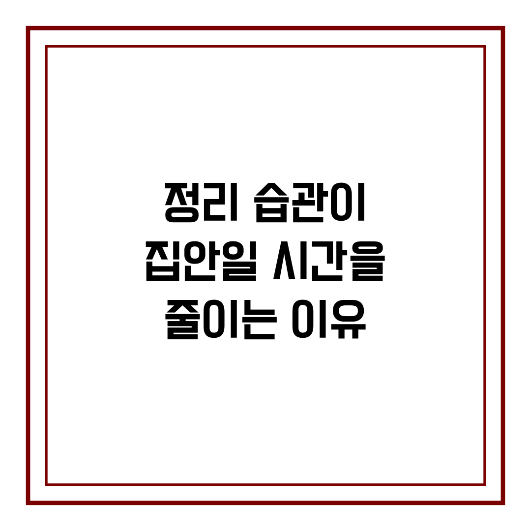 정리 습관은 집을 깨끗하게 유지하는 것뿐 아니라 집안일 시간을 줄이는 데도 큰 도움이 됩니다. 정리 습관이 집 관리에 어떤 변화를 만드는지 설명합니다.